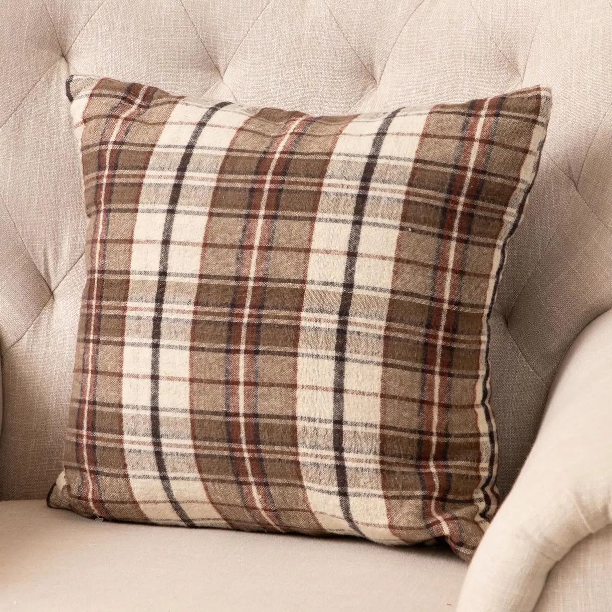 Add a touch of style to your home with our Brown Plaids, Reversible Brushed Cotton Pillow. This 18" x 18" pillow is not only aesthetically pleasing but also offers supreme comfort. Whether it's spring, fall, or winter, these versatile pillows will enhance your home's ambiance throughout the seasons.