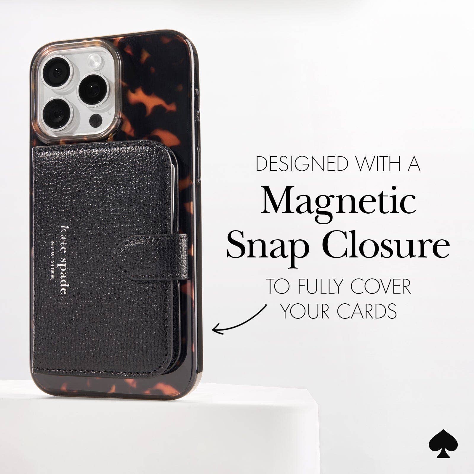 Compact, chic, and made to follow you wherever you go! The kate spade new york Morgan MagSafe Wallet snaps onto the back of your MagSafe-compatible phone case to carry all your cards, cash, and IDs. Finished with a magnetic snap closure that keeps your essentials covered.