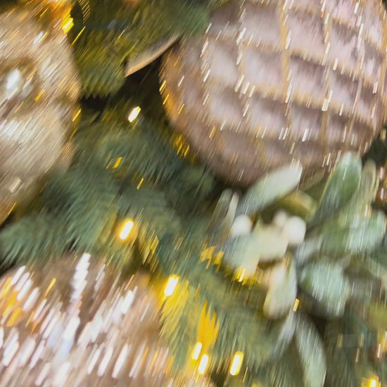 Set of 4 taupe/cream flocked ornaments. These beautiful, neutral toned ornaments would blend perfectly with many Christmas themes.