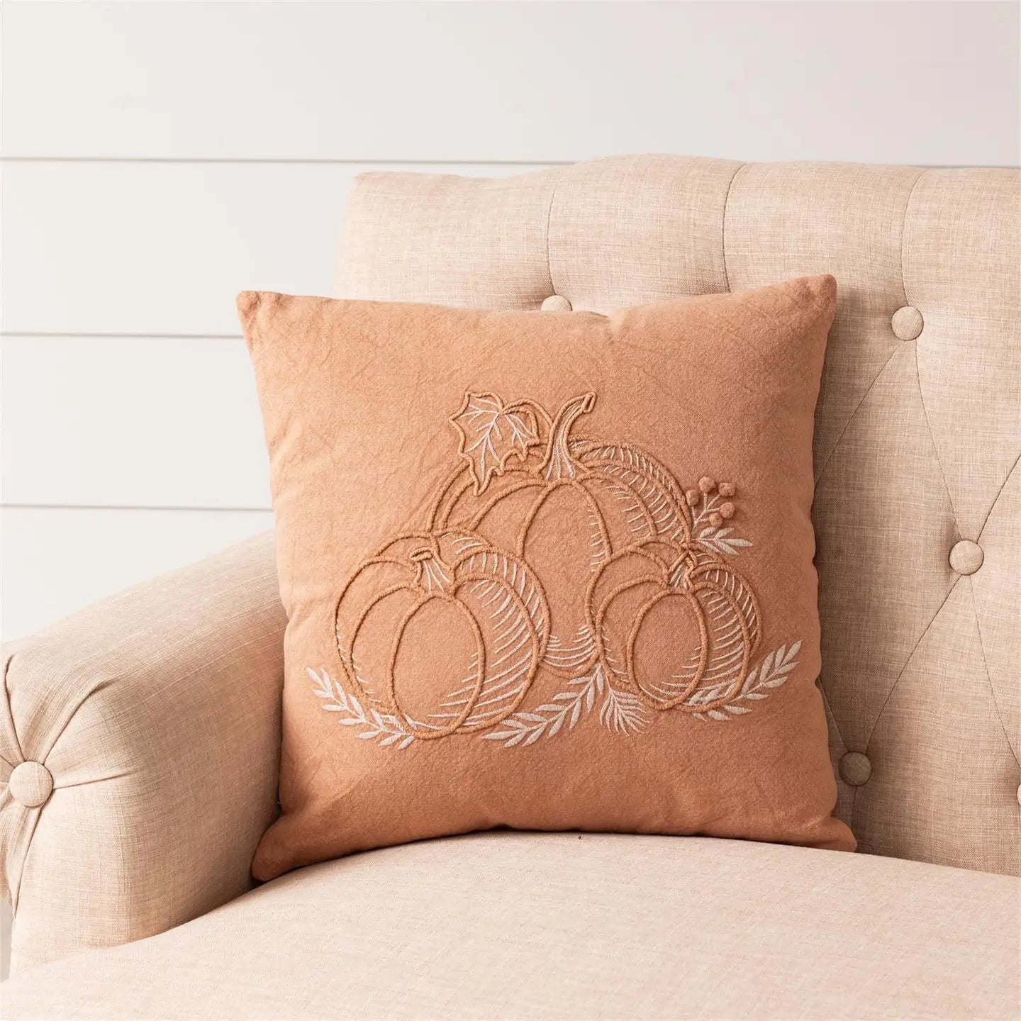 Experience the comfort and elegance with our Stonewash Pillow with Pumpkin Embroidery. These 16" H x 16" W cotton pillows come in a pack of two, offering a blend of style and coziness. The pumpkin embroidery adds a unique touch, making it an ideal addition to your home decor. Our products are meticulously crafted, reflecting our passion for product design. Add a touch of fall to your home and enjoy the blend of quality and design.
